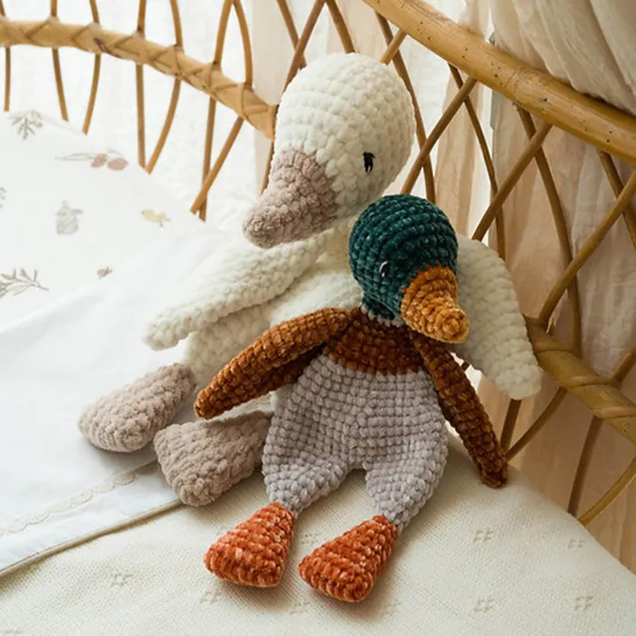 Elk dier heeft ze op drie manieren verwerkt, zoals in een knuffeldier, een snuggler, een mobiel, rammelaar of een babyspeeltje.