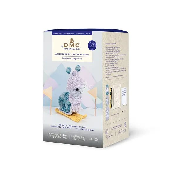 Met de amigurumi-kit Ski Snail, ontworpen door de getalenteerde ontwerpster Joanna Hateley, haak je een schattige skiënde slak in winterse kleuren.