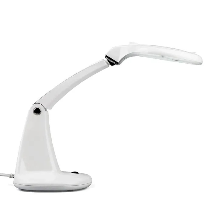 De ledlamp heeft een laag energieverbruik en lange levensduur en dankzij de brede voet staat de handwerkloep stabiel op tafel.