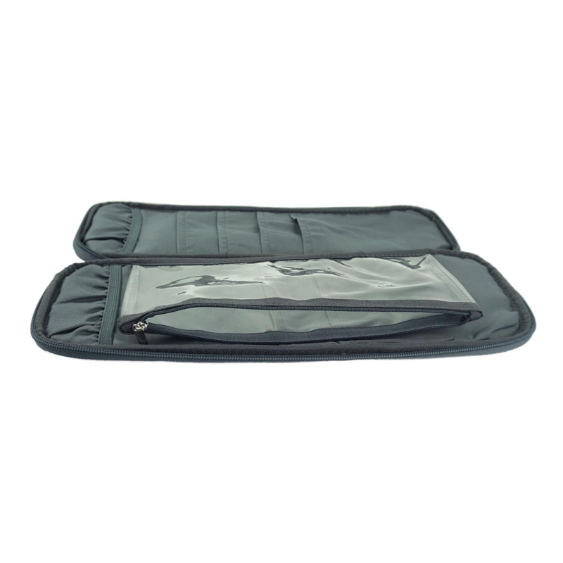 Wanneer de rits wordt geopend, ontdek je twee ruime opbergvakken, waarin breinaalden tot 35 cm, sokkennaalden en rondbreinaalden netjes opgeborgen kunnen worden.