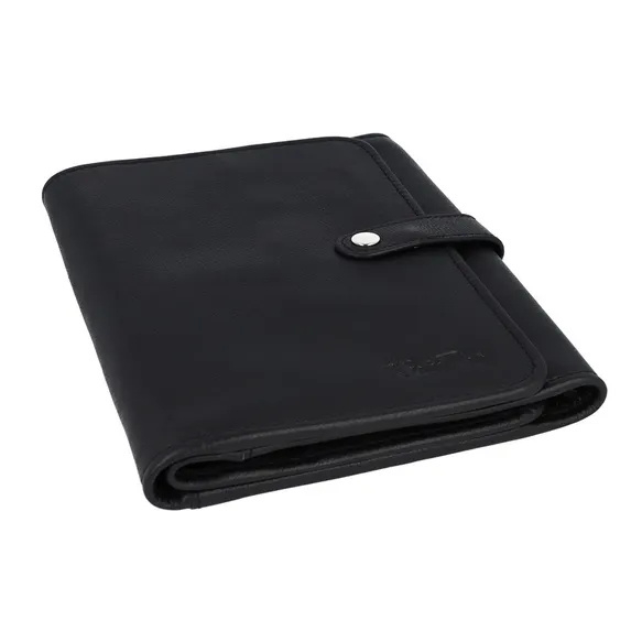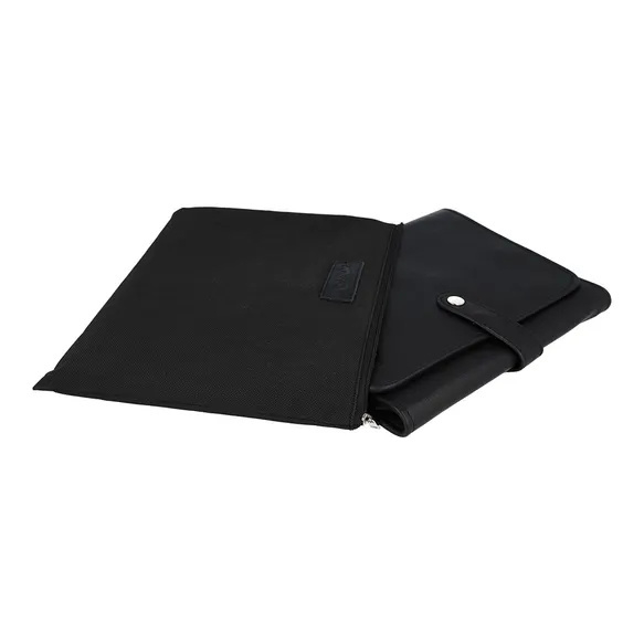Het gesloten etui heeft een afmeting van 22 x 18,5 x 3cm en opengevouwen 22 x 70cm.