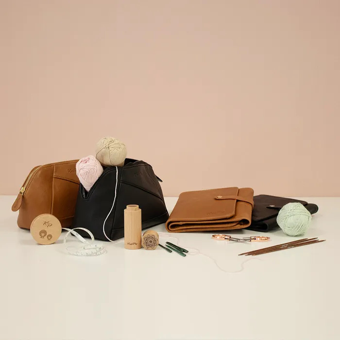 De prachtige leren KnitPro Velora etui is speciaal ontworpen voor het opbergen van rondbreinaalden, verwisselbare breinaaldpunten, sokkennaalden, kabels en accessoires.