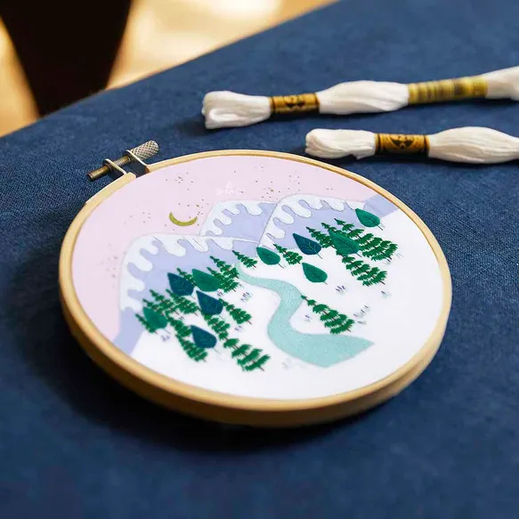 OverzichtMet deze DMC borduurkit Winter Landscape van de Britse ontwerper Georgie K. Emery maakt u een borduurwerk met traditioneel borduren.