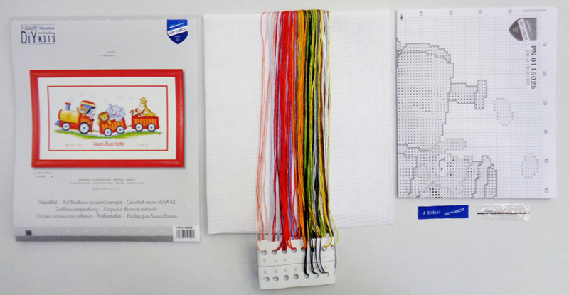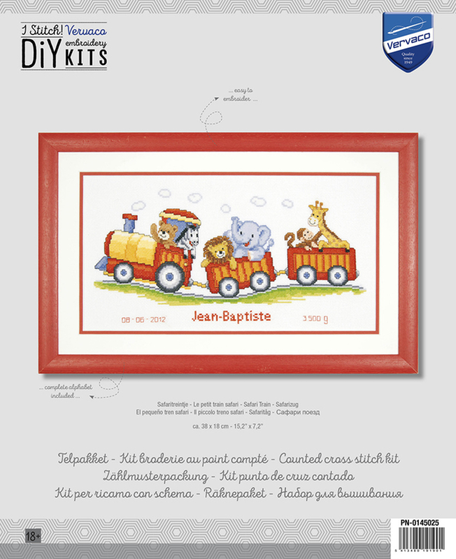 Inhoud: Borduurstof: 100% katoen, Garen: 100% katoen DMC, 5,4 steken/cm, Garenkaartje, Werkwijze in 8 talen, Vergroot telpatroon, Naald, Foto, Met alfabet