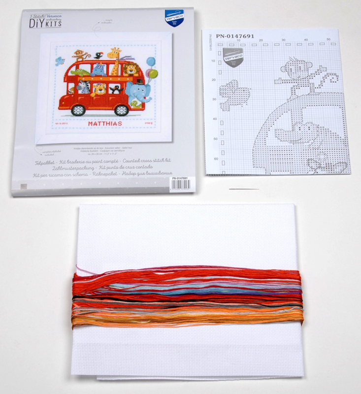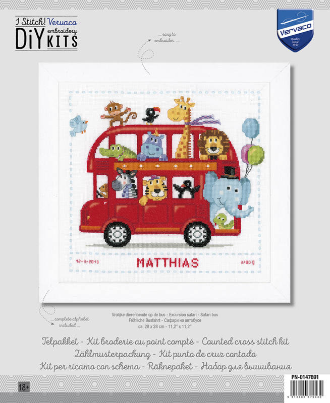 Vervaco Telpakket kit Vrolijke dierenbende op de bus
